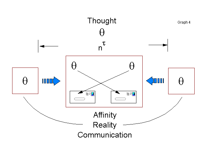 Now we are moving into this... to Chart IV. Now we take the thought... and this is the Theta level Telepathy. OK. Now we have a person here and a person here -alright? - and they want to engage in telepathic communication. Now in this method you don't have this spreading here, we don't have a beam here.