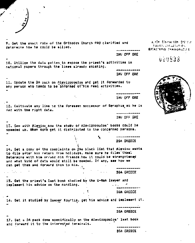 Metropolitan Serapis was at the time the head of the Greek Orthodox Church. The intention here appears to have been to give his successor information favourable to Scientology. so that he would from the outset be less disposed to support anti-cult campaigners. |
