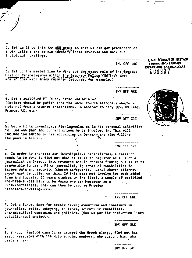 "... find out his exact relations with the Holy Synodus members, who support him, who dislike him." (Operating Target #8) |
