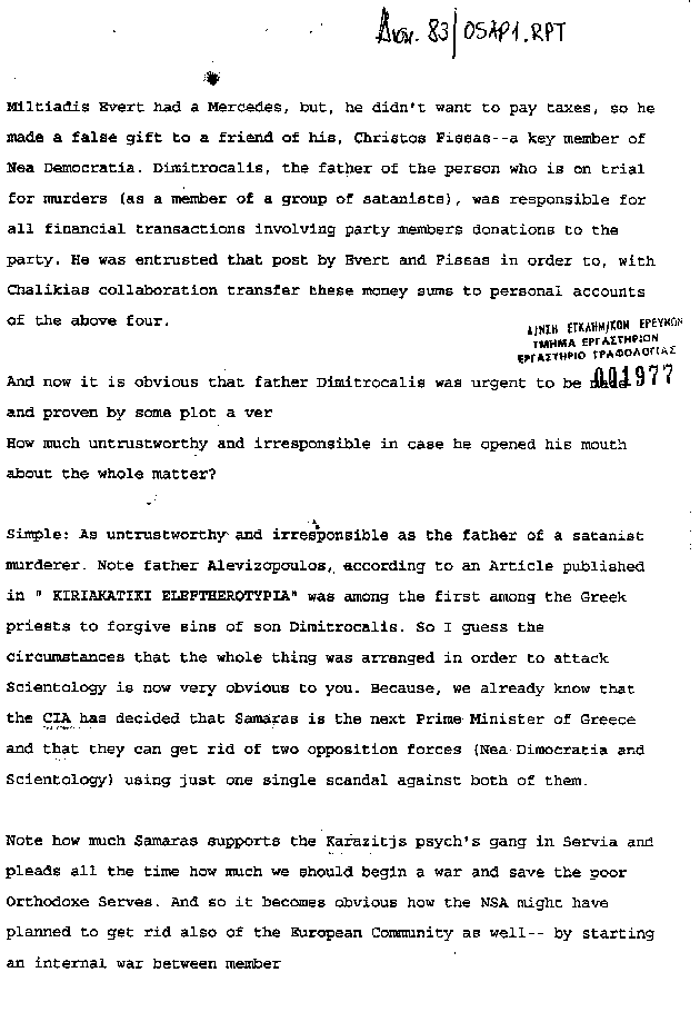 Intelligence Estimate on Miltiadis Evert (1995)