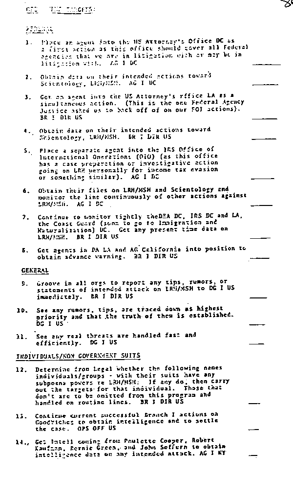 GO Program Order 158 is notable for its casual flouting of the law; note items 12, 14 and 21 in particular. It was clearly intended not simply to alert Hubbard to any legal trouble but to alert him to any inconvenience whatsoever, no matter how illegal the means might be. (The quality of this scan is rather poor, for which we apologise).